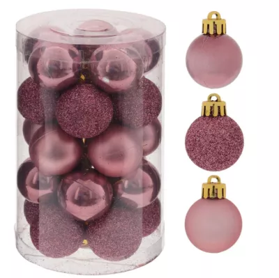 Набор шаров новогодних "Шар" 25шт, 3см, цв.розовый