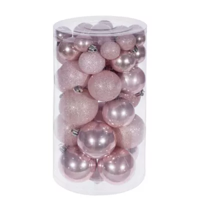 Набор шаров новогодних "Розовое сияние" 40шт, 6см