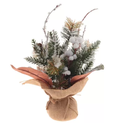 Ветка декоративная "Заснеженная хвоя с шишкой и ягодами" 50см