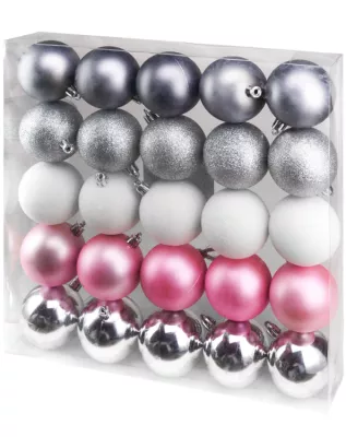 Набор елочных шаров "Мечта" D=6см, 25шт., цв.розовый/серебряный в п.у.