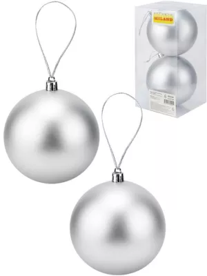 Набор елочных шаров "Веселых праздников!" D=10см, 2шт., цв.серебряный в п.у.