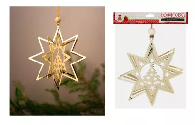 "СНОУ БУМ" Украшение декоративное подвесное "Звезда" 12см 2в.