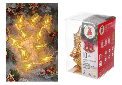 "СНОУ БУМ" Гирлянда электрическая "Золотые колокольчики" 2м цв.белый теплый
