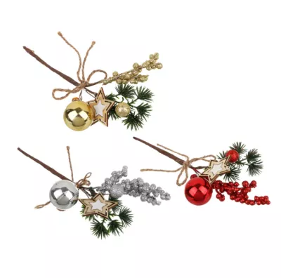 "СНОУ БУМ" Украшение декоративное подвесное "Елочная ветка с шарами и ягодами" 12см, 3в.