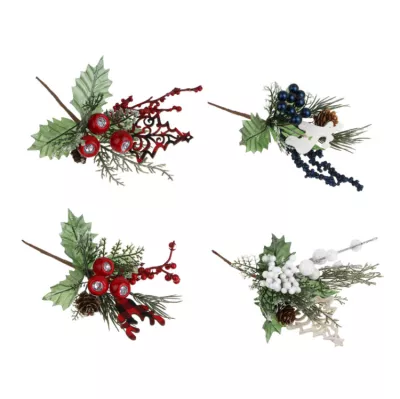 "СНОУ БУМ" Ветка новогодняя "Ягоды и шишки" 24см 6в.