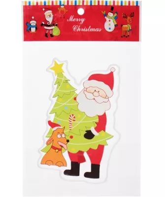 Наклейка для интер."Дед Мороз с собачкой" 15х20см