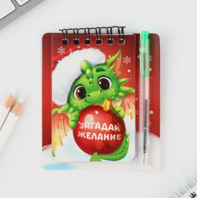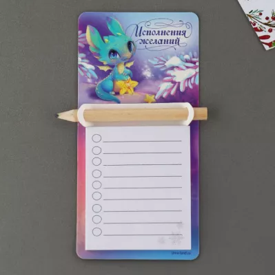 Магнит с отрывным блоком и карандашом "Исполнения желаний" 2024, 7х14,4см