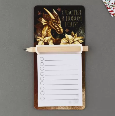 Магнит с отрывным блоком и карандашом "Счастья в Новом году" 2024, 7х14,4см