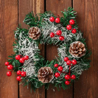 "Зимнее очарование" Ветка декоративная "Ягодки и яблочко" 22см