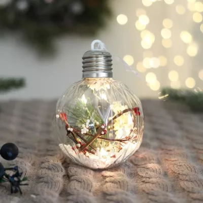 Шар новогодний "Еловая ветка" с подсветкой 8см цв.теплый белый