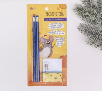 Набор "Весёлого года": ластик-сыр, стикеры, карандаш(2шт.)