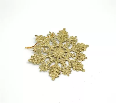 Украшение декоративное подвесное "Снежинка большая" золотой 11х11см