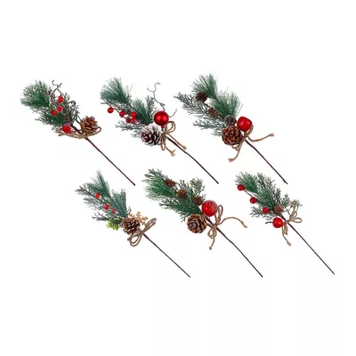 "Зимнее очарование" Ветка декоративная "Ягоды и шишки" 24см