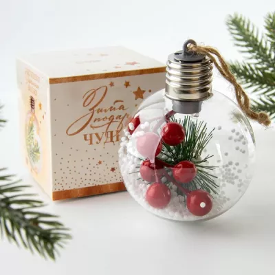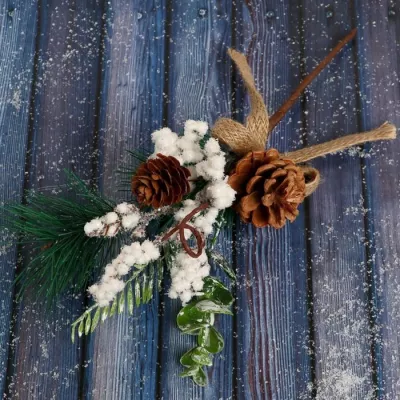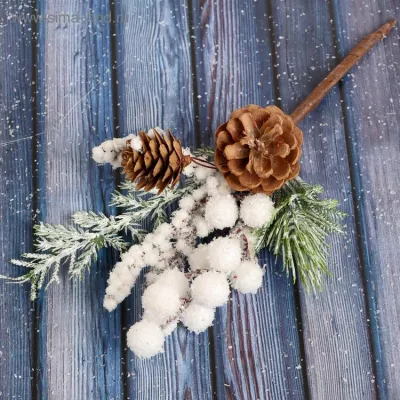 "Зимнее очарование" Ветка декоративная "Ягоды и шишка" 26см