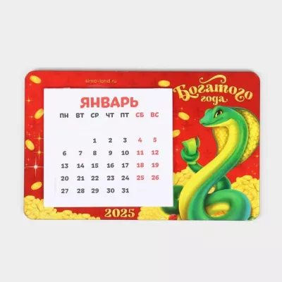 Магнит с календарем "Новый год: Змея оберегает" 7х11см