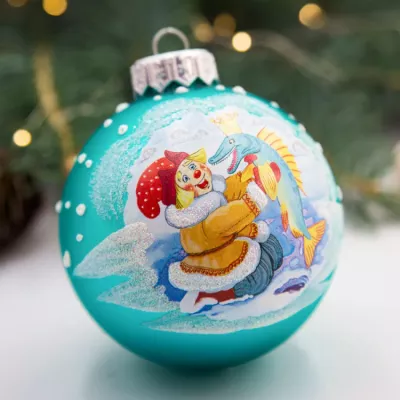 Шар новогодний "Емеля и щука" 8см в п.у.