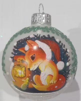 Шар новогодний "Лисенок с фонариком" 6,5см в п.у.