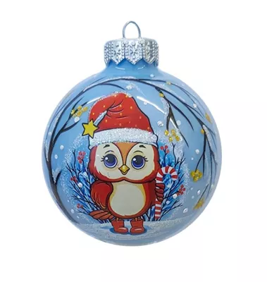 Шар новогодний "Совенок с карамелькой" 8см в п.у.