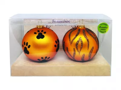Набор шаров новогодних "Тигр" 8см, 2шт в п.у