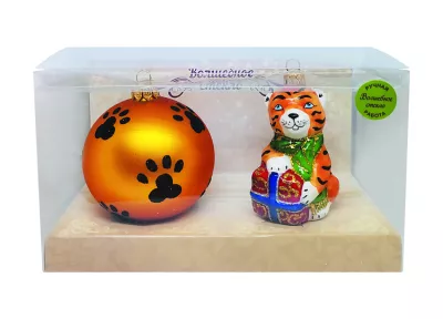 Набор шар и фигурка новогодние "Тигр" 8см, 2шт в п.у