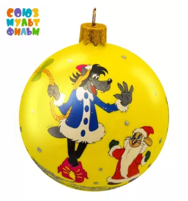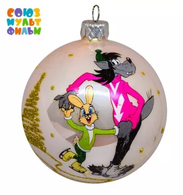 Шар новогодний "Волк и Заяц на коньках" 8,5см в п.у.