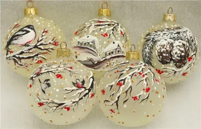Шар новогодний "Снегири на ветке" в асс., в п.у