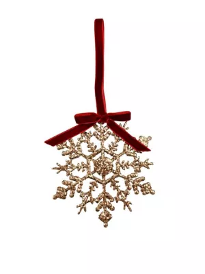 Украшение декоративное подвесное "Снежинка с лентой" 13х11см, цв.золотой