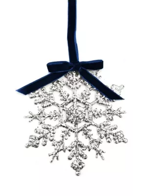 Украшение декоративное подвесное "Снежинка с лентой" 13х11см, цв.серебряный