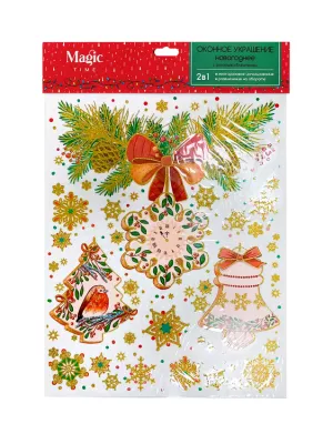 Наклейка для интер."Елочка и снеговички" 30х38см