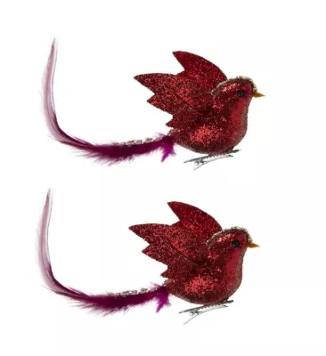 Украшение декоративное подвесное "Птички красные" набор 2шт 18x5x5см