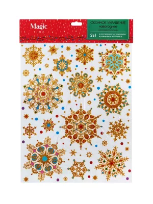 Наклейка для интер."Блестящие снежинки" 30х38см