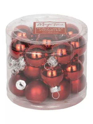 Набор шаров новогодних 24шт, 2,5см, цв.красный