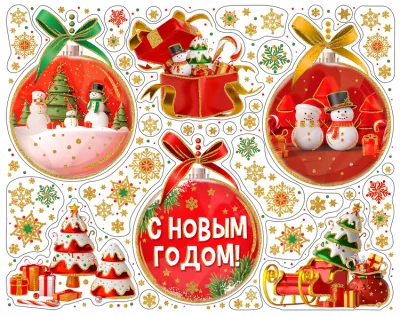 Наклейка для интер."Новогодние шарики" 30х38см