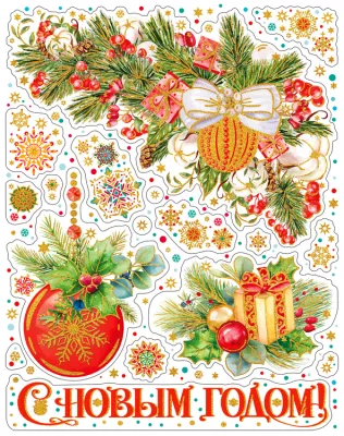 Наклейка для интер."Новогодние аксессуары" 30х38см