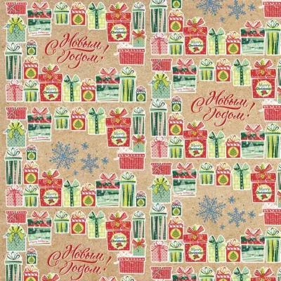Упаковочная бумага "Новогоднее поздравление" 100х70см