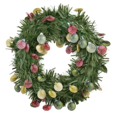 Украшение новогоднее "Новогодний венок с елочными шарами" 40см цв.зеленый