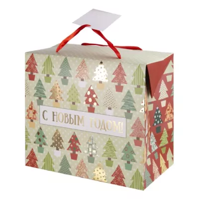 Пакет-коробка "Елочки" 22,5х20х13,5см