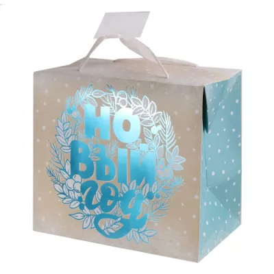 Пакет-коробка "Рождественский венок" 22,5х20х13,5см