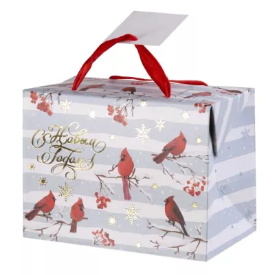 Пакет-коробка "Снегири" 15х11х9см