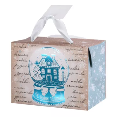 Пакет-коробка "Снежный шар" 15х11х9см