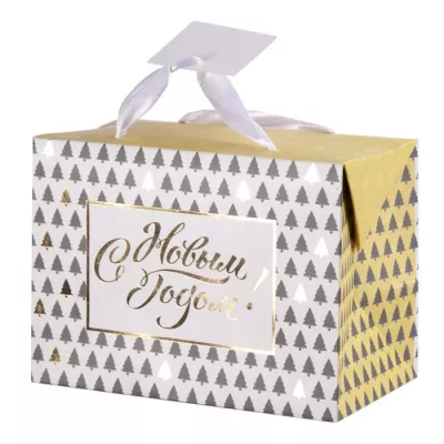 Пакет-коробка "Ёлочки" 15х11х9см