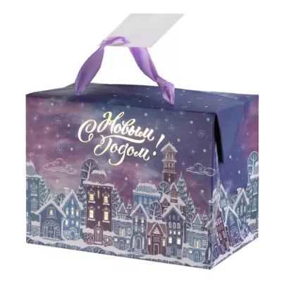 Пакет-коробка "Зимний город" 15х11х9см