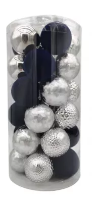 Набор шаров новогодних "Серебро на чёрном" 30шт, 6см