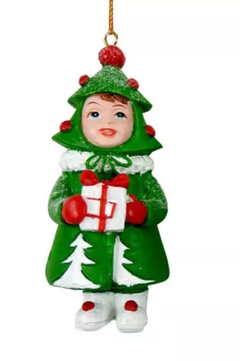Украшение декоративное подвесное "Девочка с подарком" 4,5x9,5x4,5см