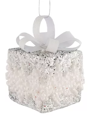 Украшение декоративное подвесное "Шишка в жемчуге" 6,5х6,5х11,5см, цв.белый