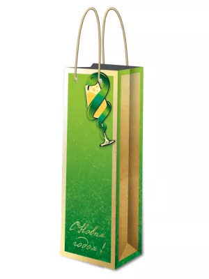 Пакет бумажный "С Новым Годом!" 12,7х36х8,3см, цв.зеленый