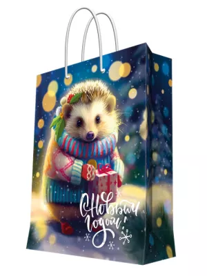 Пакет бумажный "Новогодний ёжик" 26х32,4х12,7см