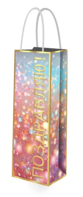 Пакет бумажный "Поздравляю" 12,7х36х8,3см