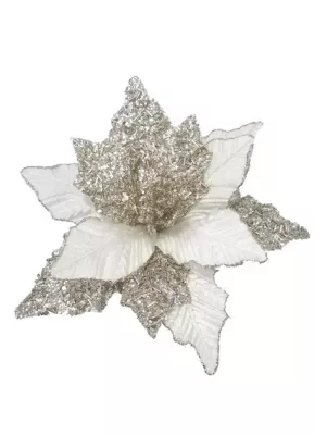 Украшение декоративное елочное "Цветок" цв.серебро 29х29х17см