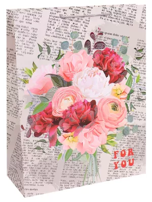 Пакет бумажный "Газета с ярким букетом" 26х32х12см